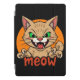 A menacing cat with glowing eyes, sharp teeth, and large claws is captured in a dark and eerie setting. Its fur bristles as it lets out a chilling "meow," embodying both ferocity and mystique. Shadows and a haunting atmosphere enhance its terrifying presence.