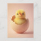 A fluffy yellow chick with an adorably fierce expression peeks out from a cracked eggshell against a soft pastel background. Perfect for Easter themes, baby products, or playful branding.