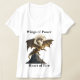 A fierce golden dragon rearing up with the full moon in the background. A slogan 'Wings of power, heart of fire' surrounds the picture. A great t-shirt for a man or a woman who enjoys fantasy. Contains generative content.
