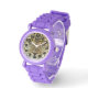 I only have one complaint. I ordered the watch with clear case and strap, and what was sent was white case and strap. I'm going to keep it because 1) it looks very nice in white, and 2) it would take too long to get a replacement made and sent in time for my occasion. Aside from the mix up with the color, the watch does look very good in white. The purple dial is actually sparkly which did not show in the online images. That was a nice surprise. If you like Swatch watches this is very similar to those. It's 33.6mm in diameter, 10.5mm thick, and 40.6mm lug to lug. Stainless steel case back says 3ATM/30m WR, so no swimming or showering or submerging this one. If you like Woodstock, this is a great choice.