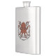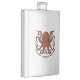 A premium flask featuring a cartoon of a rust red octopus with a mean frown, curling tentacles spread in all directions and fleshy colored suckers exposed. A decorative, nautical design for fans of cool cartoons, octopuses and cephalopods with attitude. Personalize with a simple change to the editable text which curves around the image.