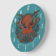 Fierce Red Octopus Tentacles Cartoon With Text Large Clock