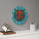 A wall clock featuring a cartoon of a rust red octopus with a mean frown, curling tentacles spread in all directions and fleshy colored suckers exposed. A shoal of fish stream past in the background. For fans of octopuses and cephalopods with attitude. Add your own legend with a simple change to the editable text which curves around the image. Customize your watch to change the ocean green background color which surrounds and shows through the semi-transparent background shape.