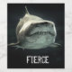 This wine label has a shark pictured on it and it says "fierece" on it.