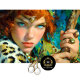 Unleash your inner fire with this bold and captivating decoupage tissue paper featuring a fierce tribal warrior. With vivid blue eyes, wild copper curls, and primitive regalia including a leopard pelt and stone jewelry, this design evokes the power and mystery of early human culture.