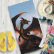 A dramatic and powerful fantasy painting featuring a fierce amber colored dragon with outstretched wings, glowing highlights, and a commanding pose against a smoky blue sky. Perfect for fantasy lovers, dragon enthusiasts, and fans of mythical creature art and epic fantasy-themed collections.
