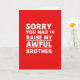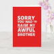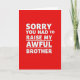 This card features a rich crimson background that feels like a daring blush, setting the stage for a cheeky, affectionate message ❤️. Centered on the front, bright white sans‑serif lettering sits in stacked lines, guiding your eyes smoothly from the top line down. The high contrast between the white text and the deep red makes the words feel confident, like a flirty note slipped across the table. A pair of thick horizontal bars in matching white frames one emphasized word, giving it a teasing punch as if someone is playfully underlining their point. The spacing between lines keeps everything easy to read while still feeling energetic and close, like a friendly nudge from someone who knows you well 🌼. The overall look is flat and graphic, with no shadows, so the message lands immediately and clearly. Two bold white horizontal bars sit above and below the highlighted word near the center of the layout.