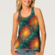 Women's All-Over Print Racerback Tank Top, White Piping, S