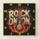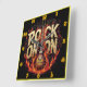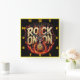 A striking guitar emerges from flames, surrounded by bold lettering that encourages a spirited rock attitude, evoking energy and passion for music.