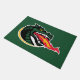 This design features the head of a stylized dragon, the mascot for the University of Alabama at Birmingham (UAB) Blazers. The dragon's head is shown in a dynamic, left-facing pose, with its mouth wide open, emitting a stylized flame. The dragon is predominantly dark green, with black accents highlighting its features, and white, jagged teeth. Its eyes are a striking yellow, adding to its fierce expression. The flame emanating from its mouth is depicted with vibrant yellow, orange, and red hues, suggesting intense heat and energy.