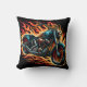 Fiery motorcycle roaring through flames at sunset throw pillow