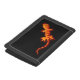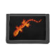 Some believe geckos bring good luck. This design features a fiery orange fractalized gecko on a dark background.