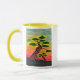 A beautiful coral sunset highlights the baobabs growing on the hill. The trees are beautifully drawn in the evening sky. The graphic presents itself nicely on the mugs.