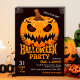 Fiery Pumpkin Jack o lantern bats Spooky Halloween Invitation