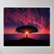 This evocative image captures the breathtaking beauty of a sunset. A solitary tree stands silhouetted against a fiery sky ablaze with vibrant hues of orange, pink, and purple. The sun, a fiery orb, peeks through the branches, casting a warm glow on the surrounding landscape. This image evokes a sense of tranquility and wonder, inviting viewers to pause and appreciate the beauty of nature's ever-changing spectacle.