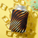 This hot design features black tiger stripes over a fiery orange and yellow background texture.