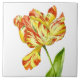 This ceramic tile bears a painting called 'Fiery Tulip' by me. It is called so as the striations on its petals