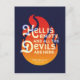 Literary postcard featuring the quote from William Shakespeare’s The Tempest “Hell is empty, and all the devils are here” against an orange fire on a blue background.