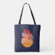 This all-over-print literary tote bag features the quote from William Shakespeare’s The Tempest “Hell is empty, and all the devils are here” against an orange fire on a blue background.