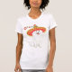 I love wearing a reprint of my colored pencil drawing of Annie the cat looking over the hillside. My illustration is based on a picture I took of Annie the manx cat. The printing turned out lovely, and the shirt is soft and thick. The American Apparel shirt run on the smaller size, so I always order a large or extra large.