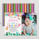 Celebrate your little one's birthday with these ever so cute taco party invitations! This colorful design features taco, cactus, guitar, pinata and, sombrero and maraca.