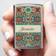 Add bold personality to your everyday carry with this customizable Zippo lighter featuring a vibrant Mexican folk art floral design. Showcasing intricate blooms in striking shades of turquoise, red, gold, and coral, the symmetrical pattern brings a festive and artistic flair to this classic piece. A customizable banner allows you to add a name, initials, or meaningful phrase, making it a unique gift or personal keepsake. Perfect for collectors, celebrations, or adding a touch of cultural charm to your pocket essentials.