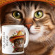 Your cat in a framed photo on a coffee mug with a fiesta border on both sides. Space for name.