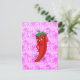 A red and hot pepper cartoon character. Original design with pink lace pattern in the background.