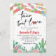 Colorful Mexican Theme Fiesta Couples Shower Invitation design with bright flowers and cactus.