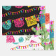 Colorful wrapping paper sheets with a Mexican banners and floral cactus design. Will make a cute and festive addition to your fiesta party gifts and decor.
