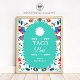 Create a fun and festive food station with this Fiesta Mexican Taco Bar Bridal Shower Sign featuring a colorful patterned background and fresh teal accents. This editable template makes it easy to personalize your sign with custom wording for your celebration. Choose professionally printed and shipped by Zazzle or download the PDF instantly to print at home for quick, stress-free party prep. Perfect for bridal showers, bachelorette parties, engagement celebrations, and taco or fiesta-themed events, this sign adds a vibrant finishing touch to your buffet table.
