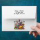 This white envelope opens to a bold black liner scattered with red, yellow & green chili peppers, while the front flaunts a colorful taco-and-tequila vignette—complete with margaritas, sombrero, cactus, and fluttering papel picado. Personalize it with your own return address and spice up “Nacho Average Birthday,” Cinco de Mayo, or any hot-sauce-worthy celebration. Perfect for matching Fiesta invitations and guaranteed to heat up mailbox excitement!