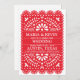 Plain white envelopes are included with paper invitations and will come to fit the invitation size you select. If you don’t need the envelopes, you may choose to not receive them by selecting the dropdown below "Envelopes" and choosing "None." If you’d like to have a design on your envelopes, you can browse all of these available envelopes to find the design that complements your Fiesta Red Paisley Spanish Wedding Invitation.