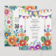 Beautiful Fiesta folkart flowers themed wedding invitation.