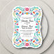 Plain white envelopes are included with paper invitations and will come to fit the invitation size you select. If you don’t need the envelopes, you may choose to not receive them by selecting the dropdown below "Envelopes" and choosing "None." If you’d like to have a design on your envelopes, you can browse all of these available envelopes to find the design that complements your Fiesta Wedding Invitation.