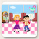 A cute retro style vintage esthetic illustrated fun sock hop oldies fun vintage style diner jukebox music playing fifties teens cartoon characters unisex deluxe cartoon character happy retro music party design home décor coffee, tea, or cocoa cup coaster set. Get some fun and cute sock hop cartoon record party kids character coasters today.