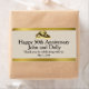 Elegant tan mini wine label, with graphics of a gold tone edge, on the top and bottom. Shiny gold interlocking wedding bands decorate the middle top of the label. Personalize the text for your wedding reception or anniversary party. Great for mini wine and champagne bottle favors at your celebration.