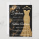 Fifty and Fabulous script minimal black, gold, white, marble, glitter modern 50th birthday invitation that you can personalize and send out for your fiftieth birthday party celebration. The words "Fifty and Fabulous" are set on a classy black and gold marble background, with popular white script font typography, placed aside an elegant, sophisticated gold glitter strapless evening gown. Have fun customizing the name, date and time, location, and RSVP with the editing tool.