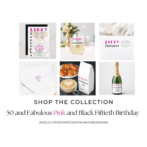 Modern Pink and Black Fifty and Fabulous BirthdayDesigned by Hillary Lee