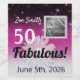 #50 or Fifty and Fabulous! Celebrate with fun black, pink, and white formal, but fun wine labels. Pale pink daisy with faux sparkle center stands out against the soft hombre background. Pink and white star accents twinkle in the background of this original graphic design. White text 50 with purple and black cursive typography “fabulous”. Personalize the event with the Birthday girl’s name and date of birth.