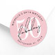 Curved around the top and bottom edges of the sticker is space to include the birthday person’s name, age, and party date for a personalized touch. The blush pink background adds a stylish, modern feel, and all colors—including fonts and background—can be customized to match your party theme.