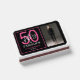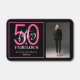 Modern Minimal Fifty and Fabulous black, white and hot pink matchbox 50th birthday party poster sign that you can personalize for your fiftieth birthday party celebration. The words "Fifty and Fabulous" are set using trending bold font typography.