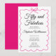 Fifty and Fabulous Whimsical Pink and Black Script Invitation