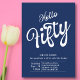 Fifty Blue White Modern 50th Birthday Invitation