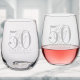 Celebrate in style with this modern etched stemless wine glass, perfect for a “Fifty and Fabulous” birthday celebration or any milestone event. The glass features a large “50” across most of the front, with the word “fifty” etched in elegant script layered over it. Just below, “fabulous” appears in a bold sans serif font for a sleek, modern look.