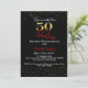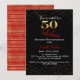 Fifty & Fabulous Birthday Black Red Gold Glitter Invitation