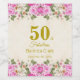 Fifty & fabulous with beautiful pink flowers on light sparkling wine beige background. Text can be personalized. Beautiful, golden text classic and elegant.