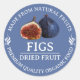 The label features a vibrant and appetizing design with illustrations of juicy figs capturing the essence of your delicious dried fruit. The use of warm colors like peach, white, and purple emphasizes the natural and fresh qualities of your product.
