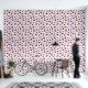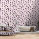 Wallpaper with a pattern of fig on a light pink background and purple polka dots: a lovely gift for a person who has just moved or for your home decoration!