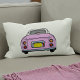 Double sided pillow cushion featuring a cute pink Figaro Car and a secret Clan McFig tartan car silhouette on the other side. You can easily change the background colour